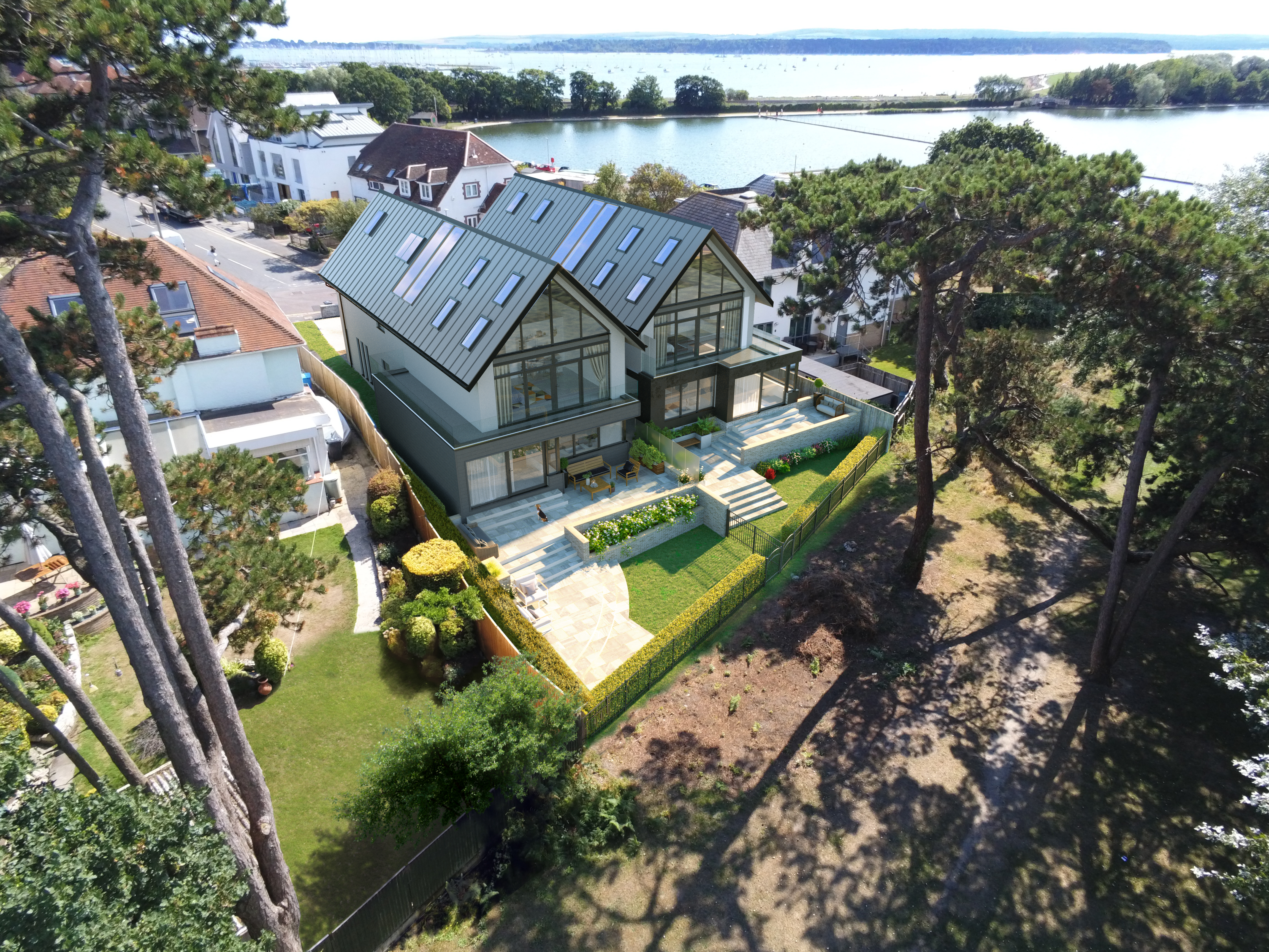 An exclusive 5 bedroom house in a private Cul-de-sac near Sandbanks in Dorset offers 2 reception rooms, 4 bathrooms and large open plan living spaces with superior German kitchens and state of the art appliances.